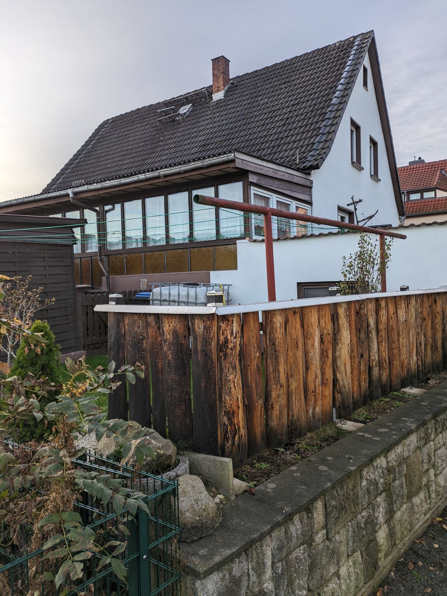 Der liebevoll von den Vorbesitzern angelegte Außenbereich ist in einem gepflegten Zustand. Eine geschlossene Veranda bietet zu jeder Jahreszeit einen tollen Blick in die Natur und auf den nahe liegenden Kohlberg.